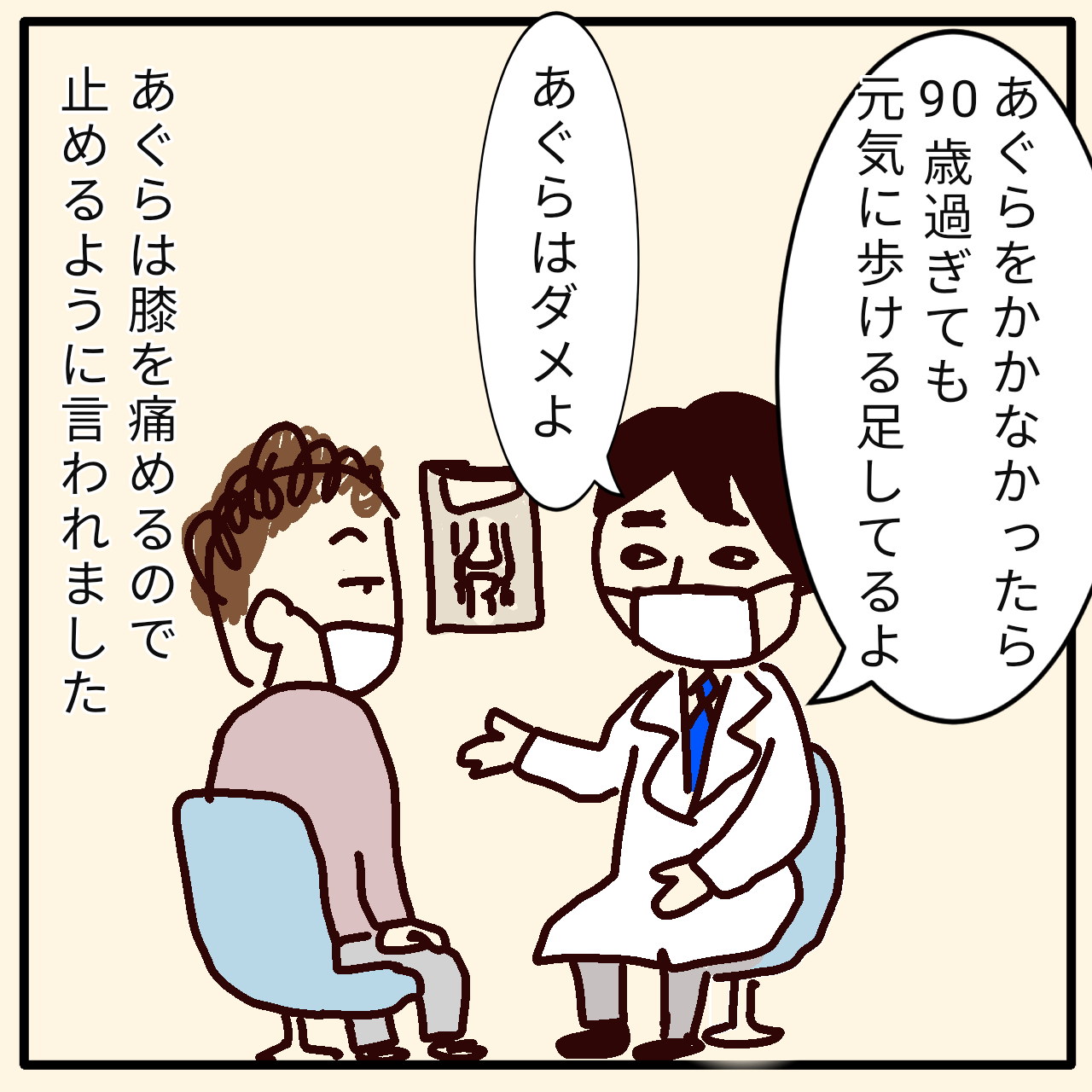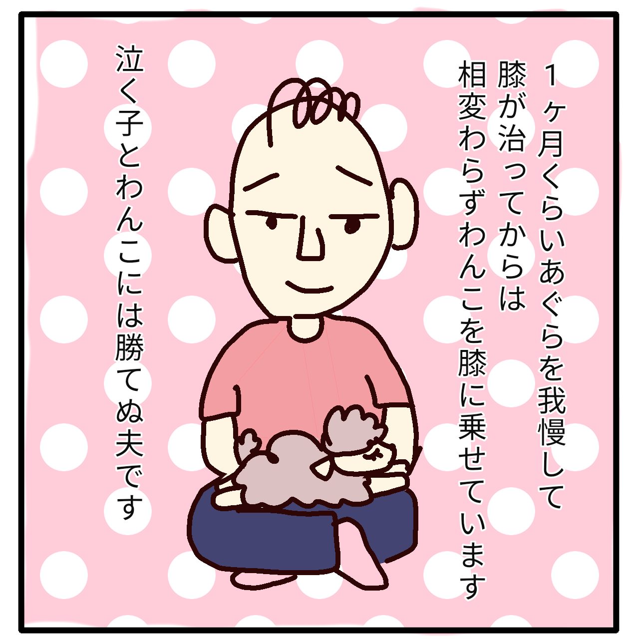 43.膝を痛めた理由 2021年10月30日 あまりに痛かったのか、病院嫌いの夫が珍しく素直に整形外科に行きました骨の写真を見てあぐらをかいてるって分かるんですねすごいあぐらが膝を痛めるのにはびっくりでした(関係なさそうなのに)そして私の膝ではなく夫のあぐらの上に乗りたいわんこの要求に夫は負けてしまいました泣く子とワンコには勝てぬ < 前の記事次の記事 > コメント コメントフォーム 名前 コメント 記事の評価 リセット リセット 顔 星 情報を記憶 コメントを投稿する