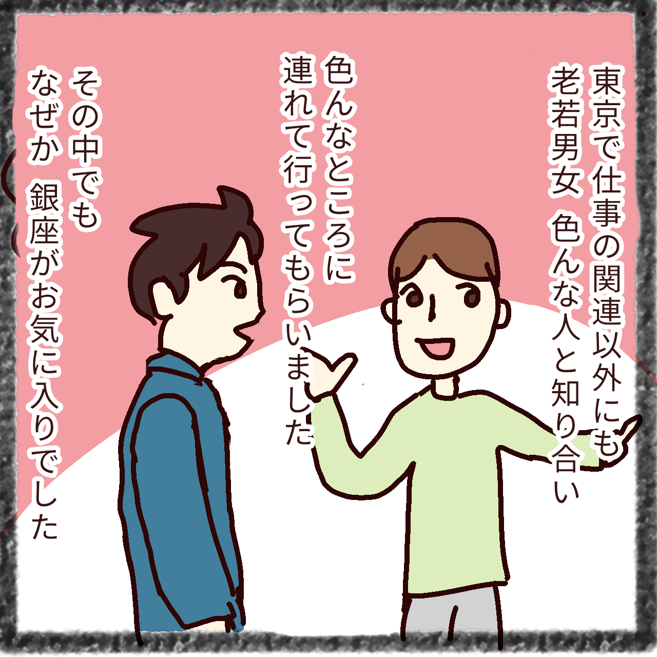 68.息子が3年前 東京でえらい目にあった話④ 2021年12月10日 さてようやく舞台は東京です本人は銀座と言ってますが銀座の近くじゃないのかなぁ?と思っています。この頃、息子は銀座はけっこう面白いよって言っていたので若い子が面白いって感じるところなのかな?って不思議に思いました。今までの話はこちらからどうぞ < 前の記事次の記事 > コメント コメントフォーム 名前 コメント 記事の評価 リセット リセット 顔 星 情報を記憶 コメントを投稿する