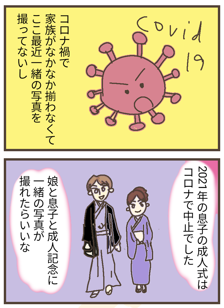 成人式の前撮り⑤ これを機にやりたいこと 2023年08月07日 前回からの続きです前回ははこちらから シリーズを最初から読む コロナで家族がなかなか揃わなかったから、毎年撮っていた家族写真が撮れなかったときがあリます。いい機会なので、家族できちんとした写真を撮ろうと思ったのです。続きはこちら < 前の記事次の記事 > コメント コメントフォーム 名前 コメント 記事の評価 リセット リセット 顔 星 情報を記憶 コメントを投稿する